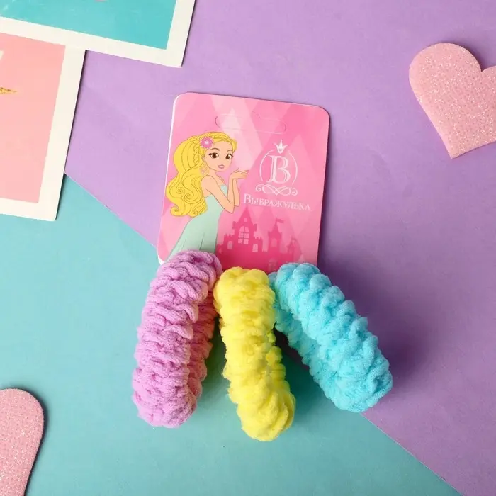 Резинка для волос "Спорт" (набор 3 шт) завитушки, 4 см, микс
