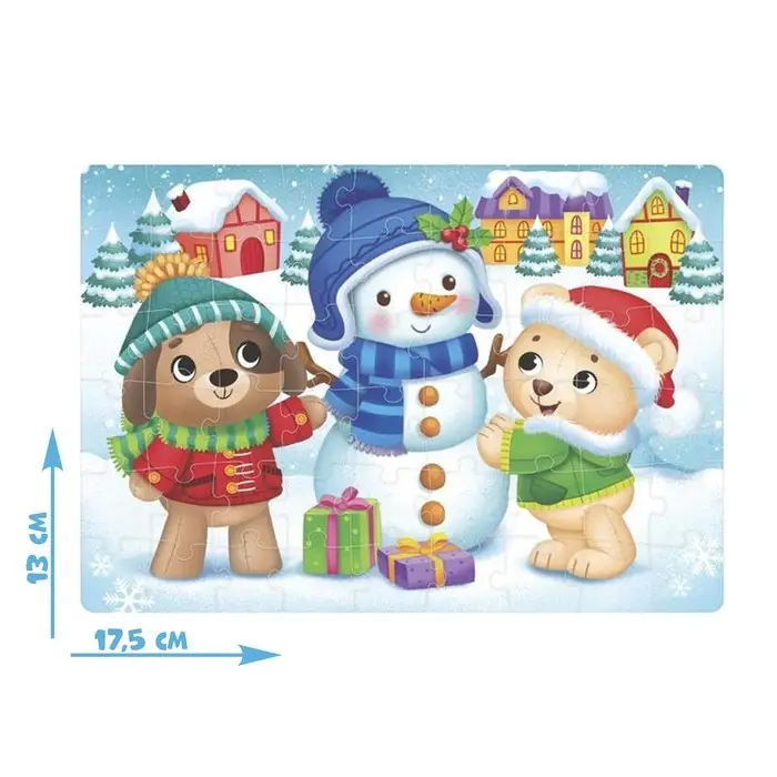 Ребёнок соберёт все 54 детали в одно целое и получит красочную картинку размером 17,5 × 13 см.