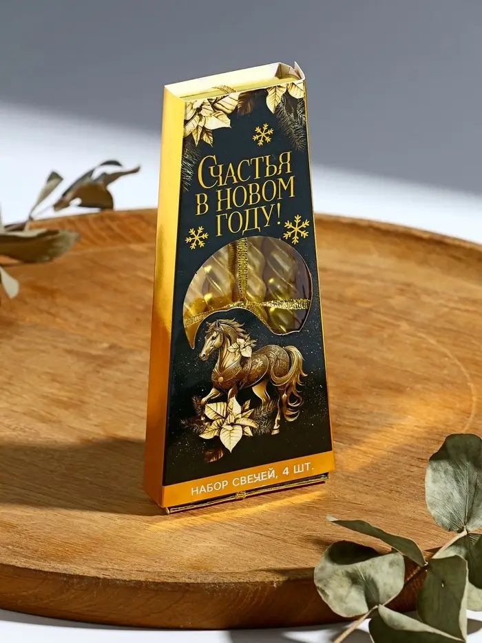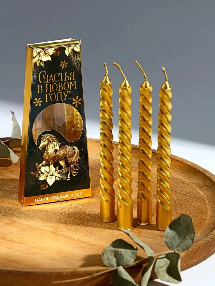 Свечи витые «Счастья в новом году. Золотой конь», 4 шт, 6,8 х 16 х 2 см