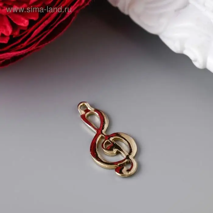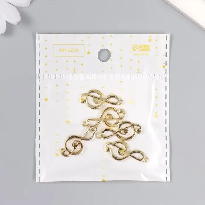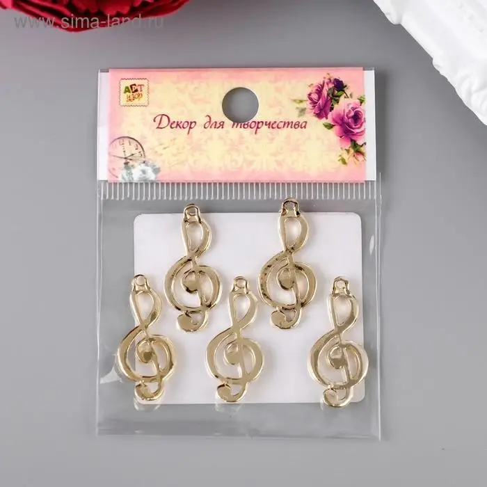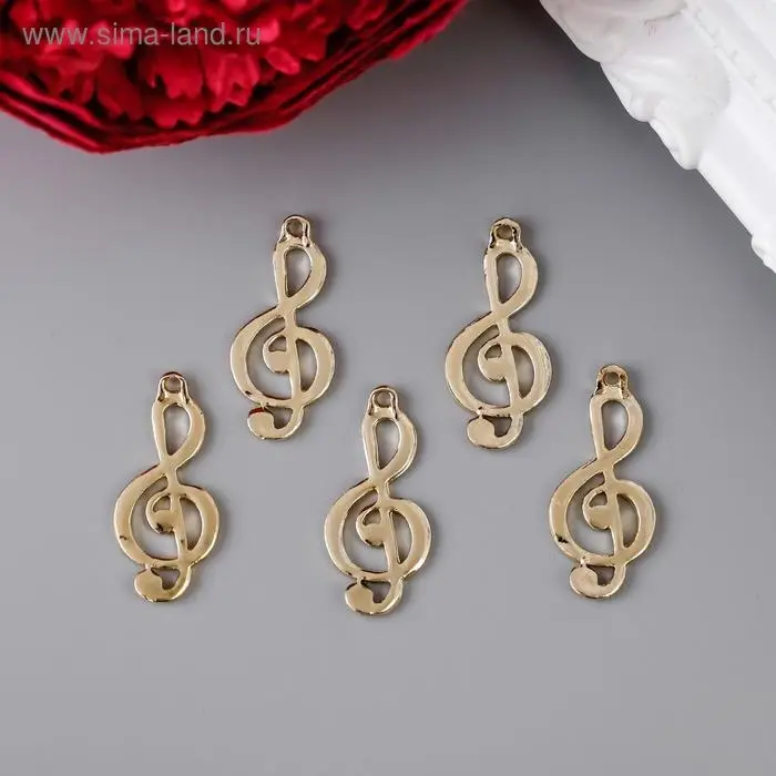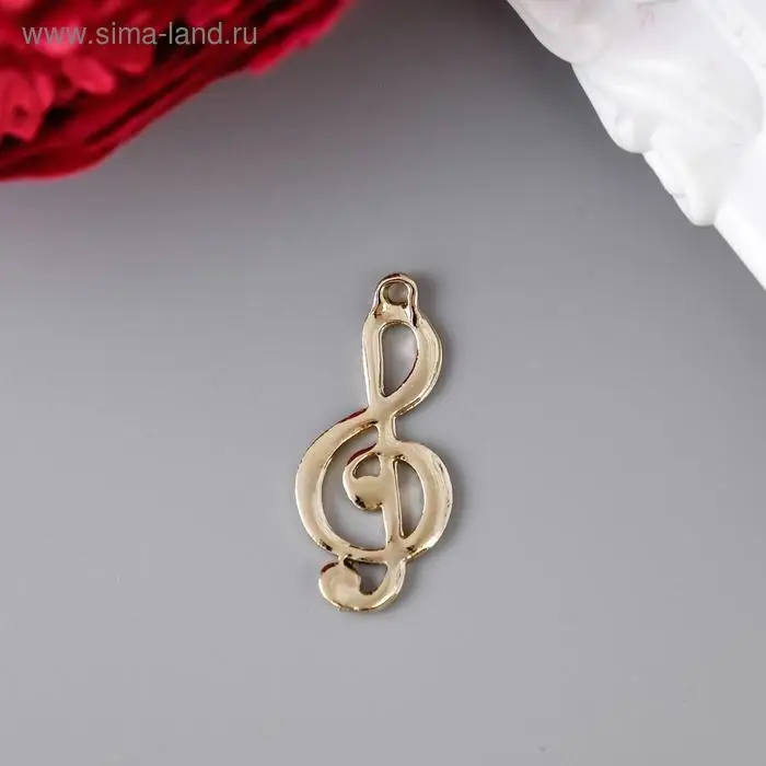 Металлический элемент, декоративная подвеска «Арт Узор. Скрипичный ключ», золото, 2.9×1.3 см
