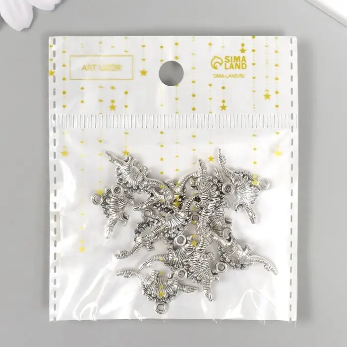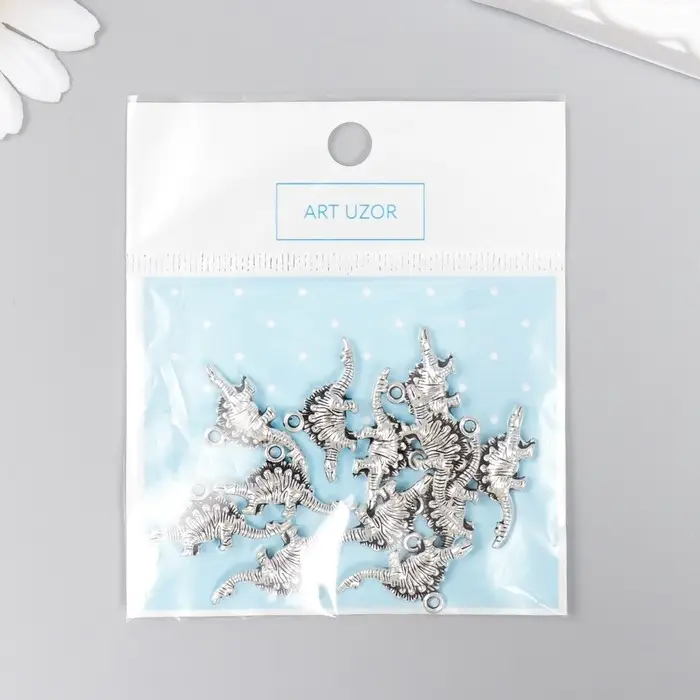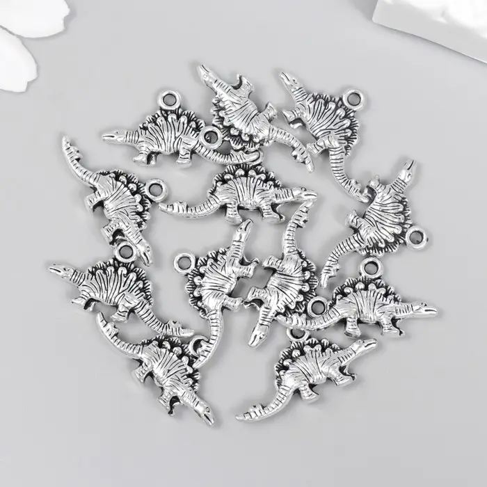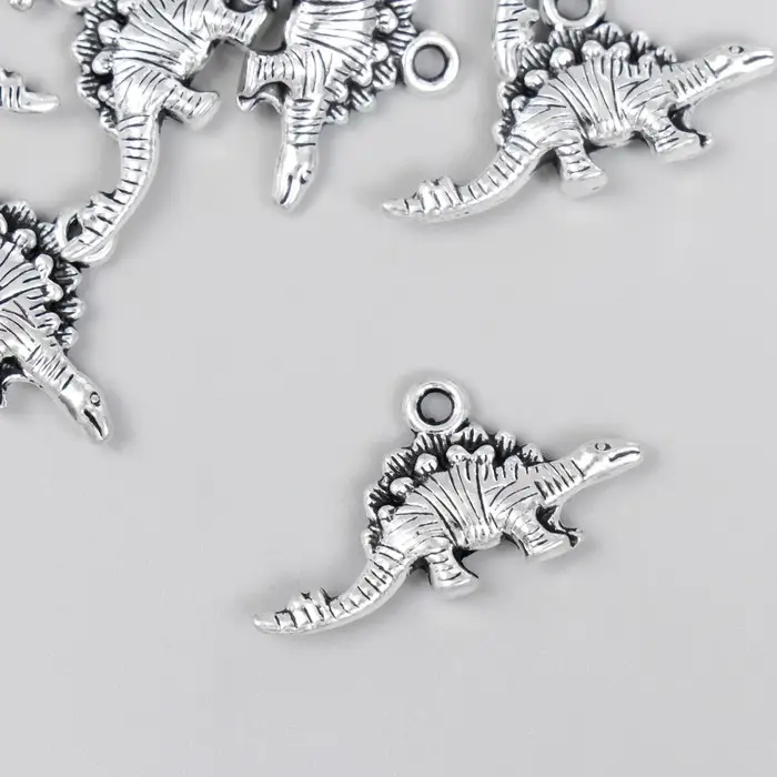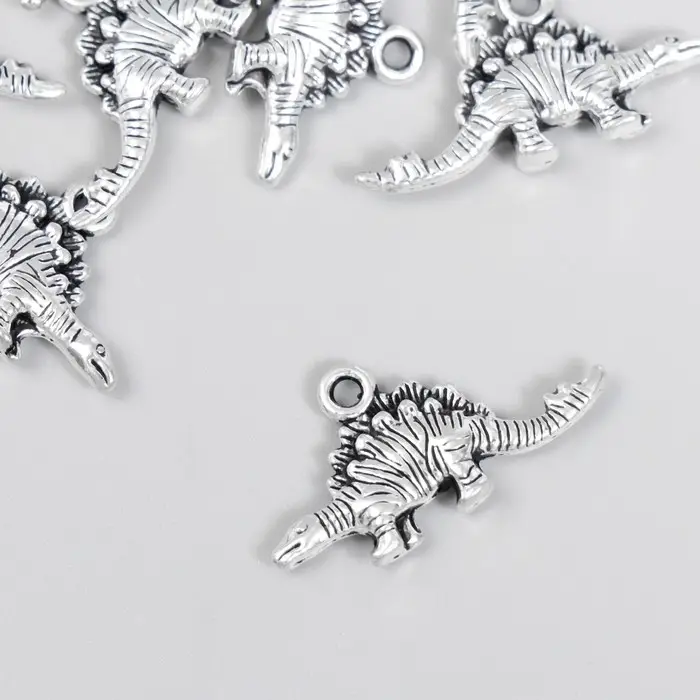 Металлический элемент, декоративная подвеска «Арт Узор. Стегозавр», серебро, 2.6×1.2 см