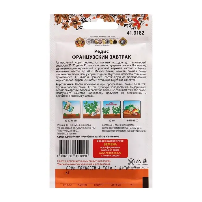 Семена Редис Французский завтрак 6 г