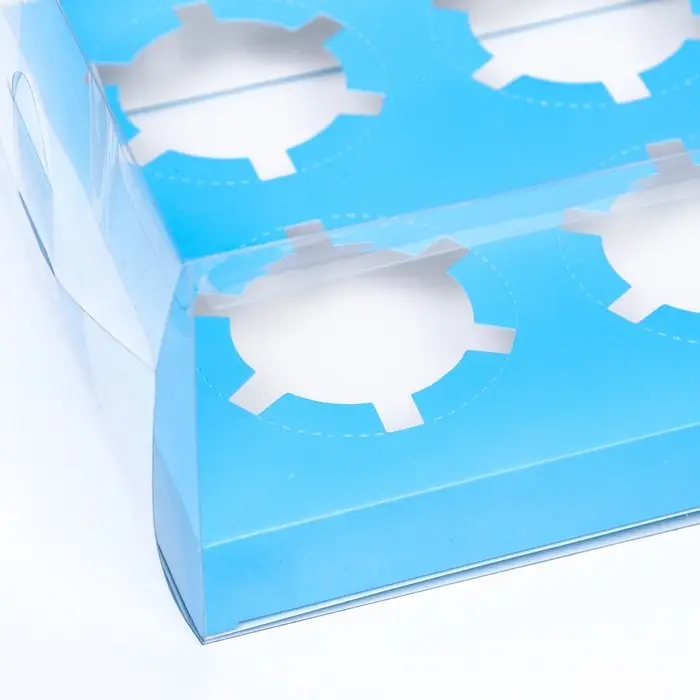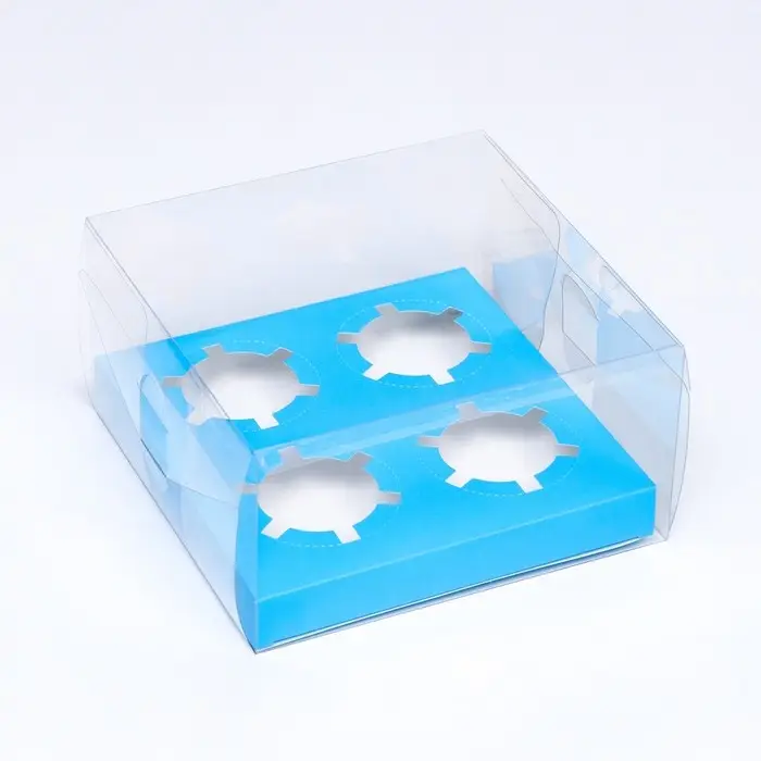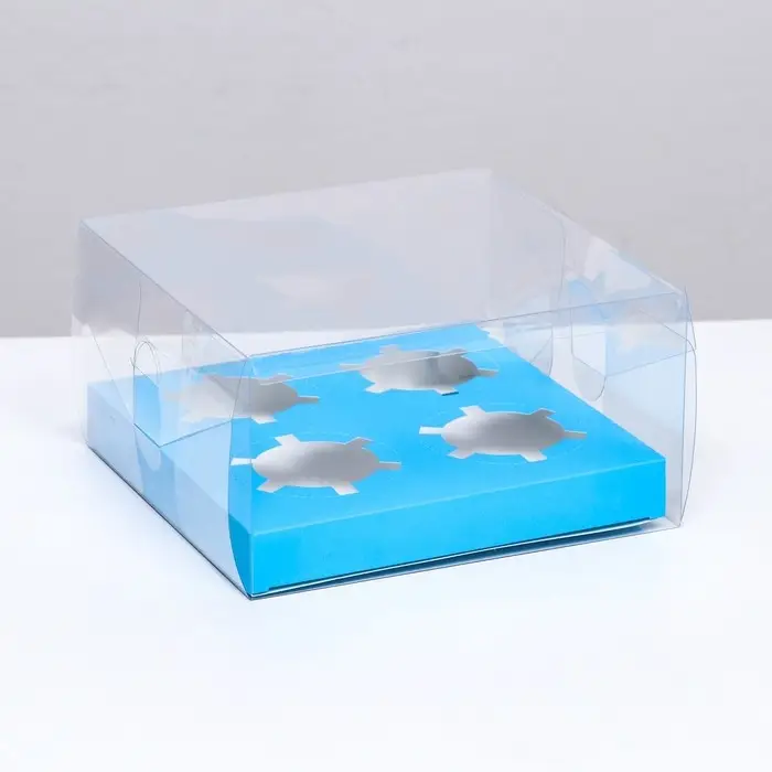 Коробка на 4 капкейка, кондитерская упаковка, голубой 18.5 × 18 × 10 см