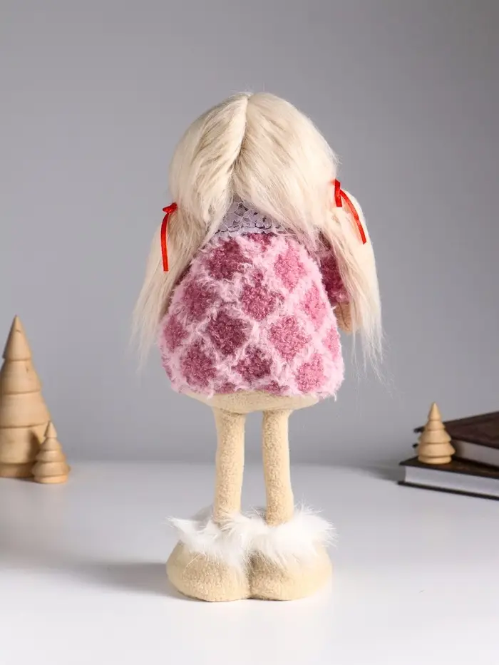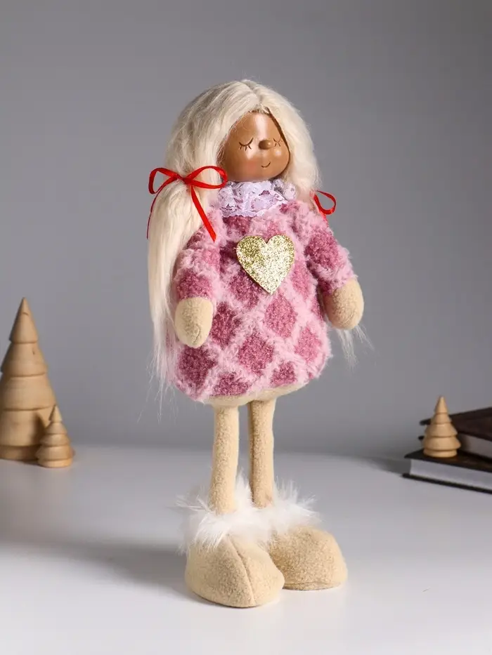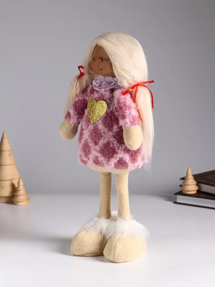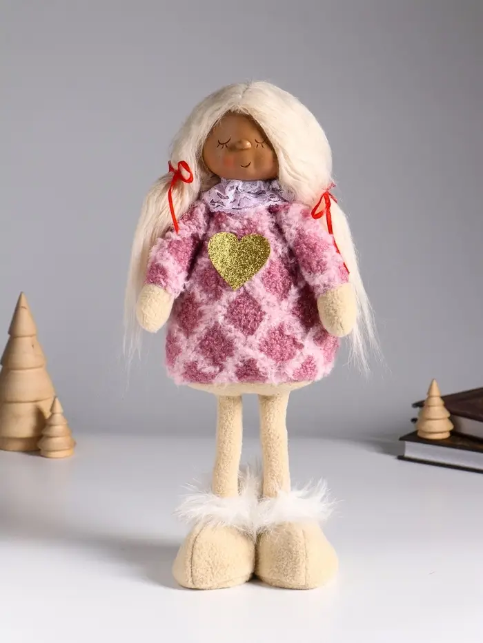 Кукла интерьерная "Малышка с хвостиками в розовом платье с сердцем" 14х8,5х32 см