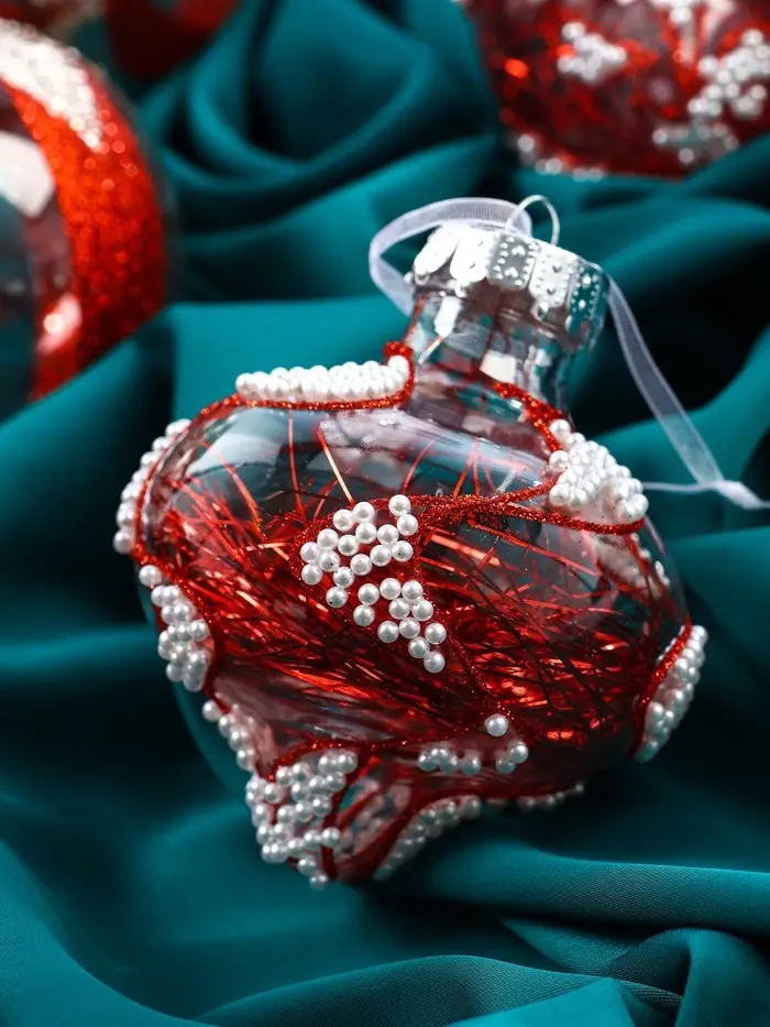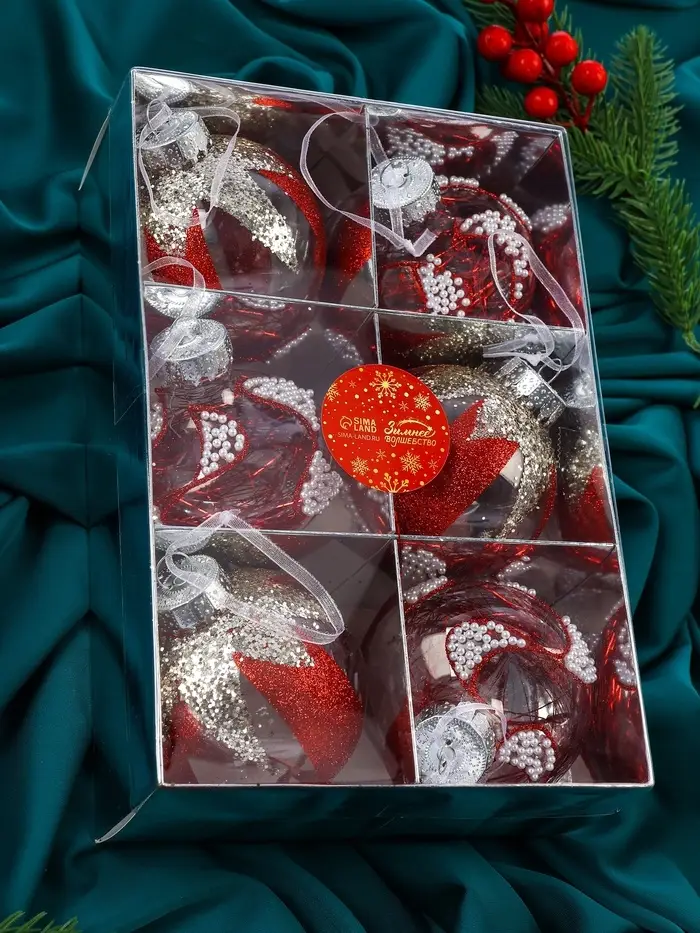 Набор шаров пластик d-8 см, 6 шт "Мелвин" красно-белый