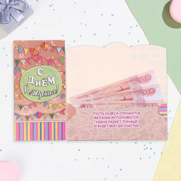 Конверт для денег «С Днём Рождения!», 17×9 см