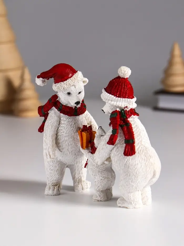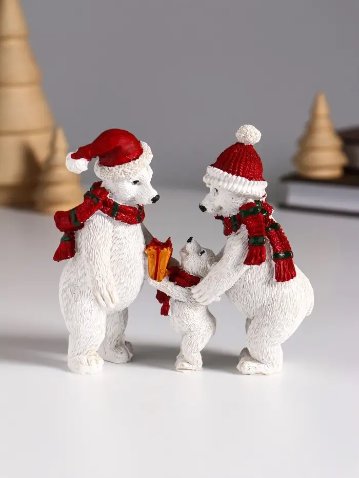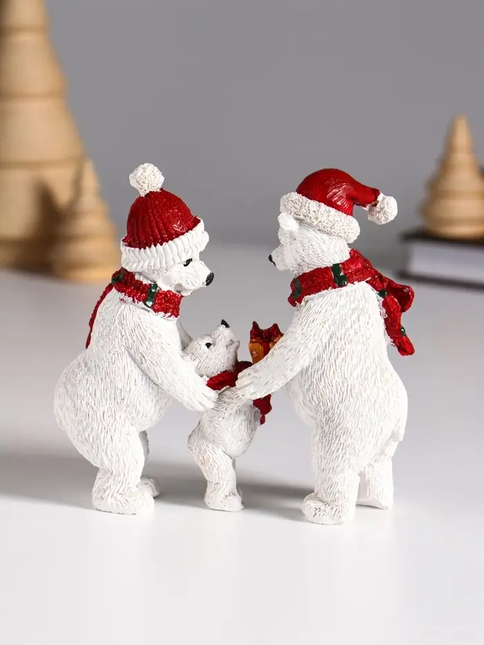 Сувенир полистоун "Семья белых медведей в вязаных шарфах и шапках" 10,5х4,3х10 см
