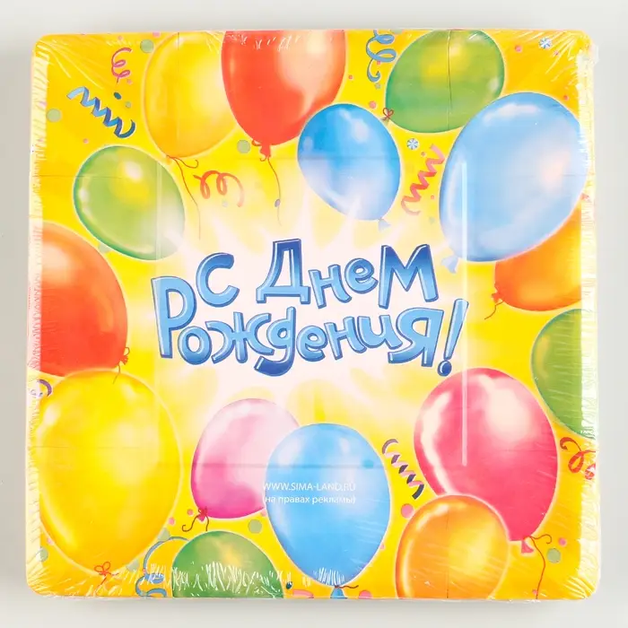 Тарелка одноразовая бумажная квадратная " С днем рождения "