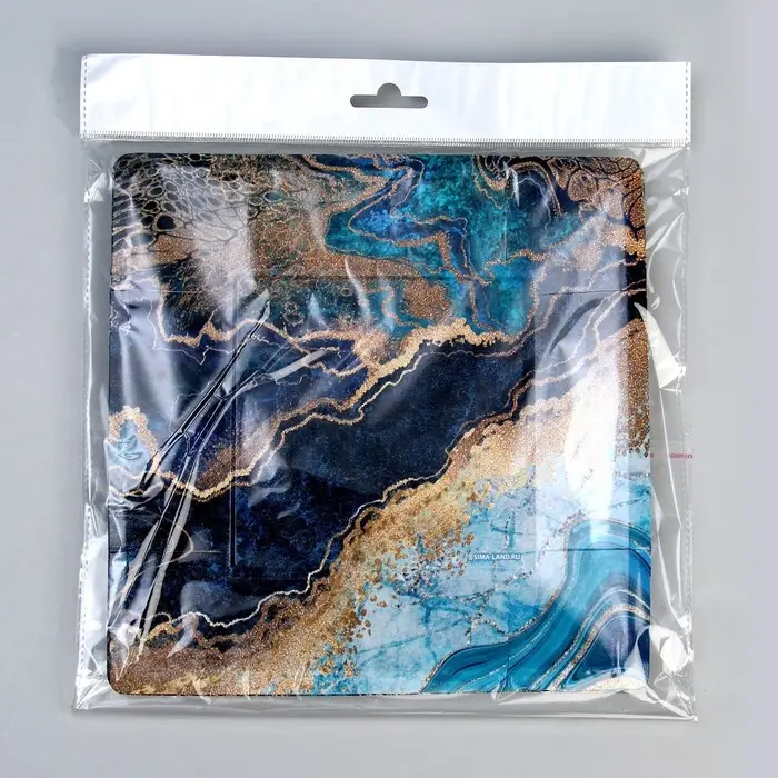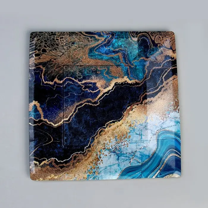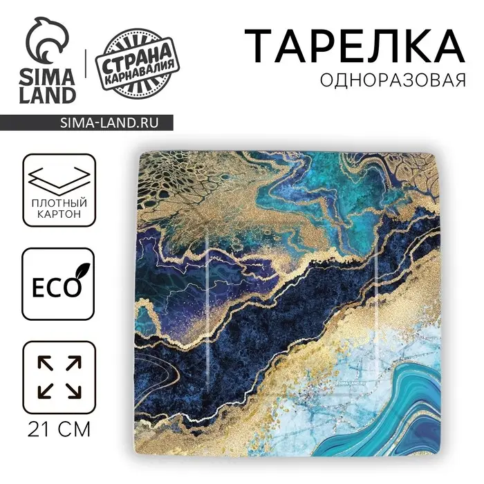 Тарелка одноразовая бумажная квадратная «Мрамор», синий,21 см