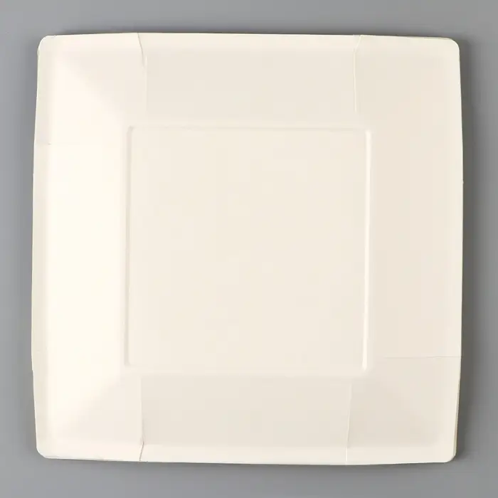 Тарелка сделана из плотного картона, что гарантирует её прочность и устойчивость к влаге.