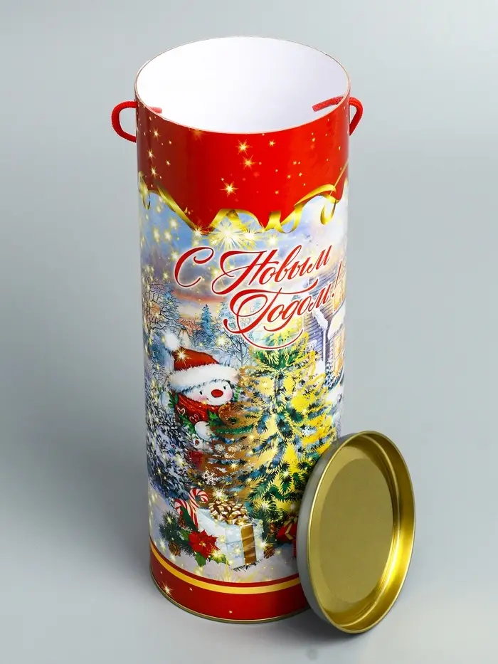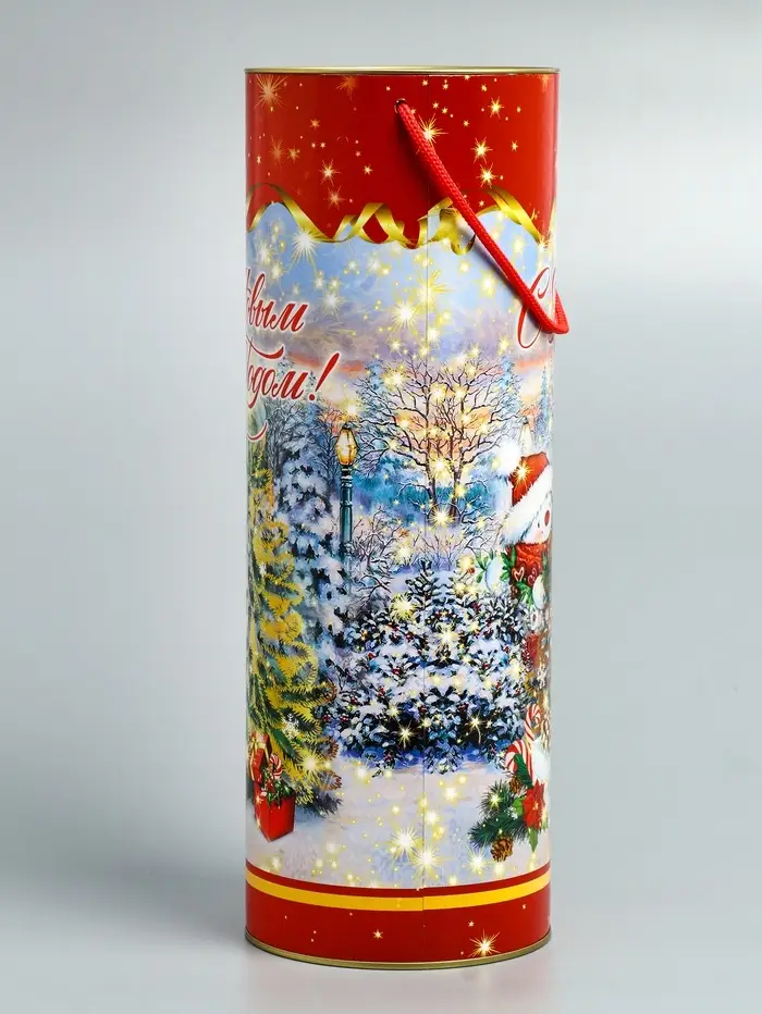 Подарочная коробка, тубус под бутылку «Золотая елочка» 120х345мм (325 мм внутр. Высота)¶
