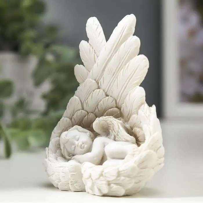 Ангелы всегда считались предвестниками чего-то хорошего, священного и доброго, они защищают и помогают нам в трудную минуту, поэтому в народе считается благим знаком иметь в доме фигурку ангела. Сувенир полистоун "Белоснежный ангел малыш спящий в крыльях" 8,5х7х4 см станет не только милым ангелом хранителем, но и актуальным подарком на Пасху, Рождество или День святого Валентина. Пусть этот малыш озаряет жизненный путь Вам и Вашим близким.
