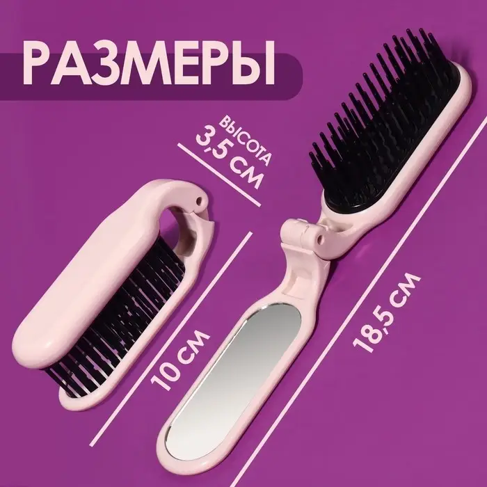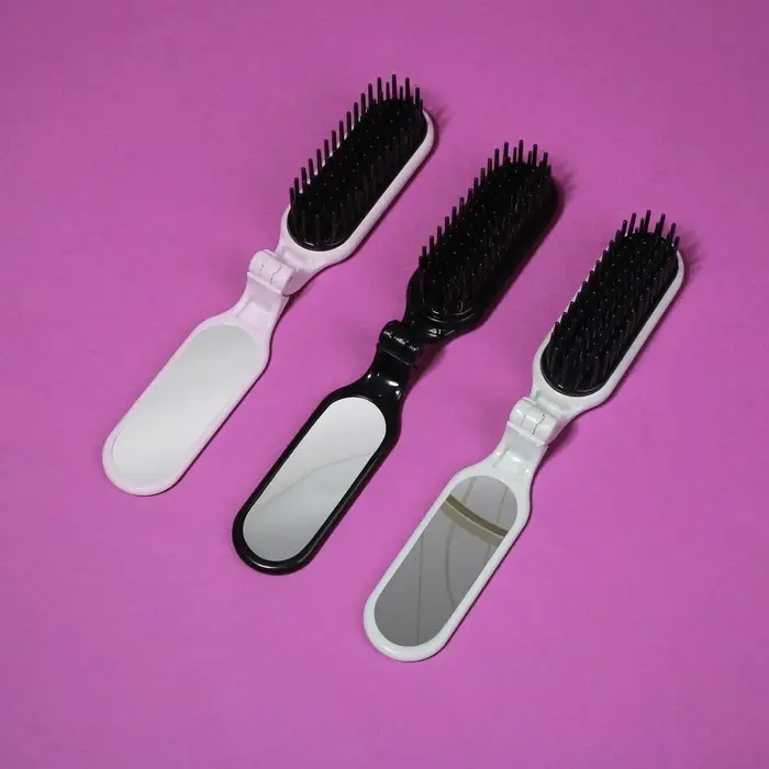 Расчёска массажная, складная, с зеркалом, 3 × 10 см, цвет МИКС