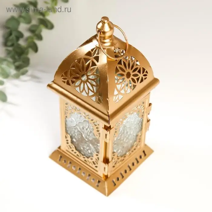 Подсвечник металл, стекло на 1 свечу "Фонарик. Сахара" золото 21,5х10х10 см
