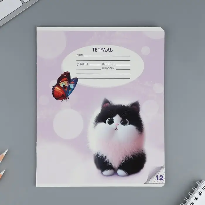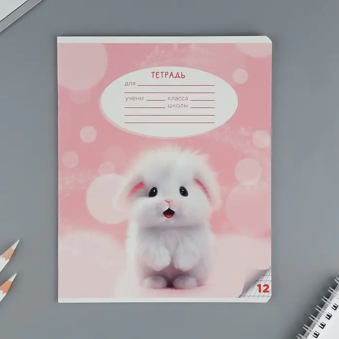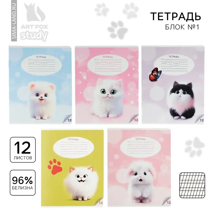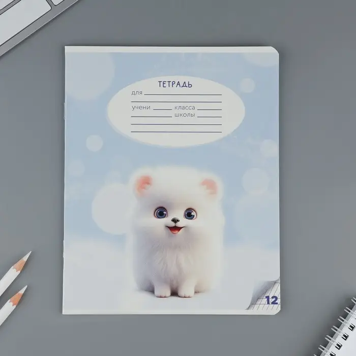 Тетрадь 12 листов в частую косую линейку, А5, на скрепке, блок №1 «Пушистые питомцы» МИКС