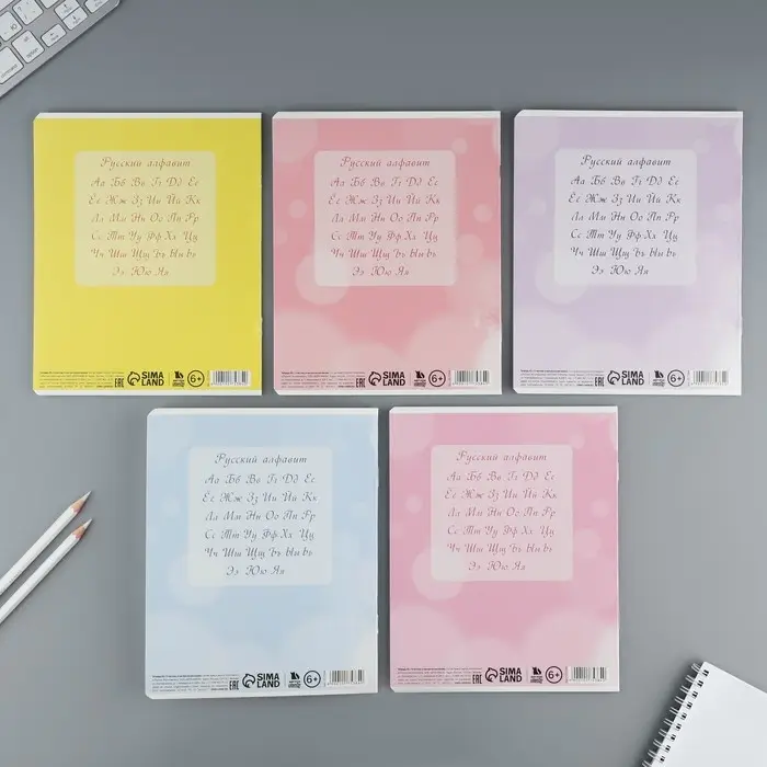 Комплект тетрадей из 5 штук, 48 листов в клетку Calligrata "Любимые питомцы", обложка мелованная бумага, блок №2, белизна 75% (серые листы)