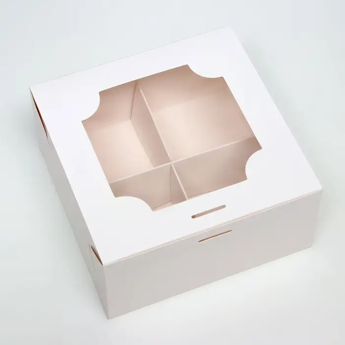 Коробка для 4 пирожных, белая, 16×16×8 см