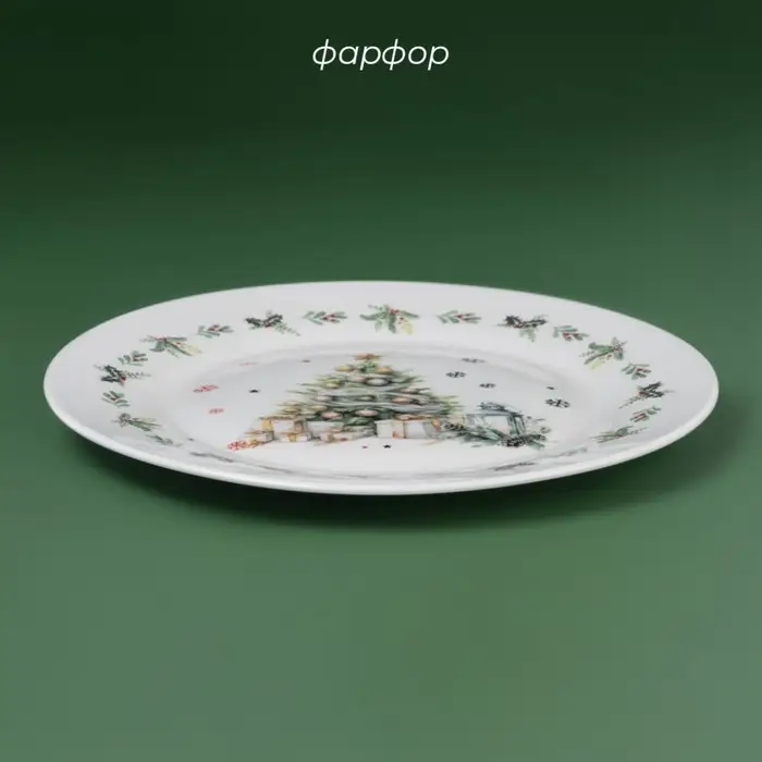 Тарелка новогодняя Доляна «Приближение чуда», d=20.5 см, фарфор, белая