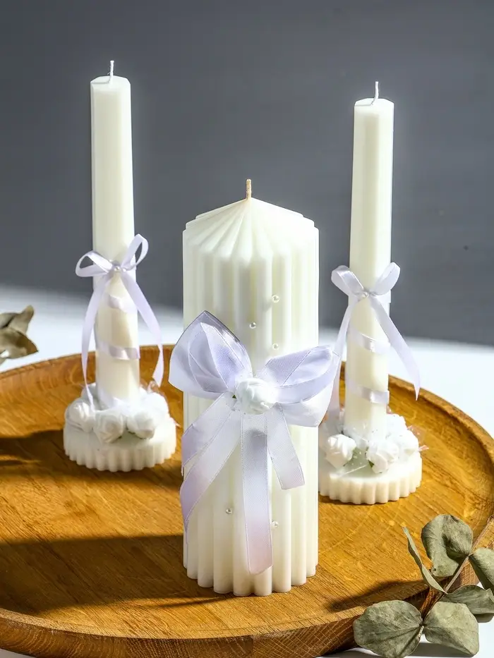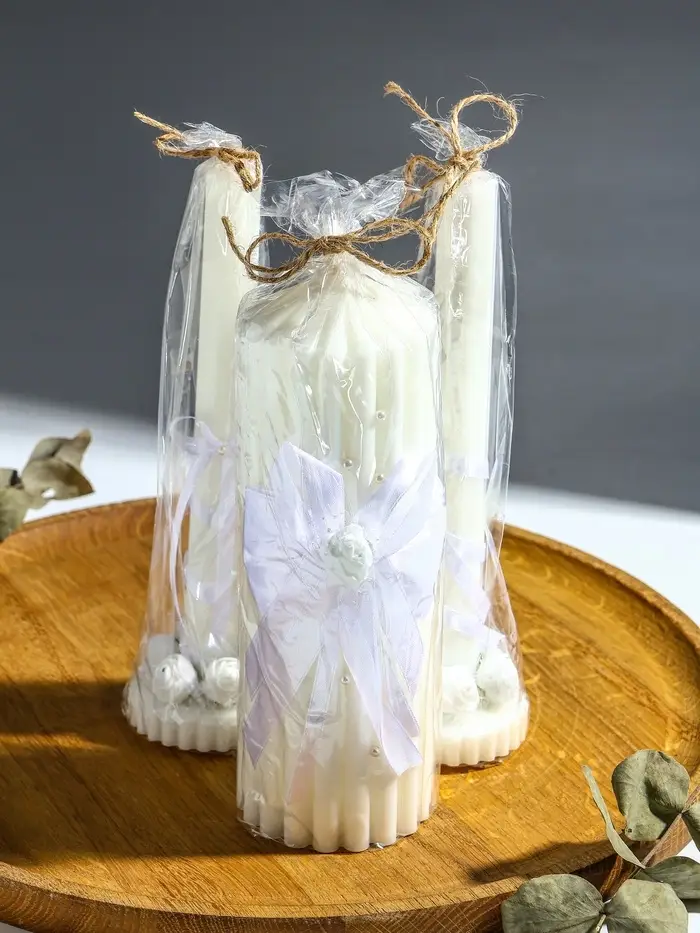 Свечи свадебные "Большая любовь" набор 3 шт (20,5 см + 2 шт по 22 см), белый