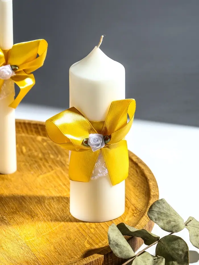 Свечи свадебные "Пышный" набор 3 шт (16 см + 2 шт по 18 см), золотистый