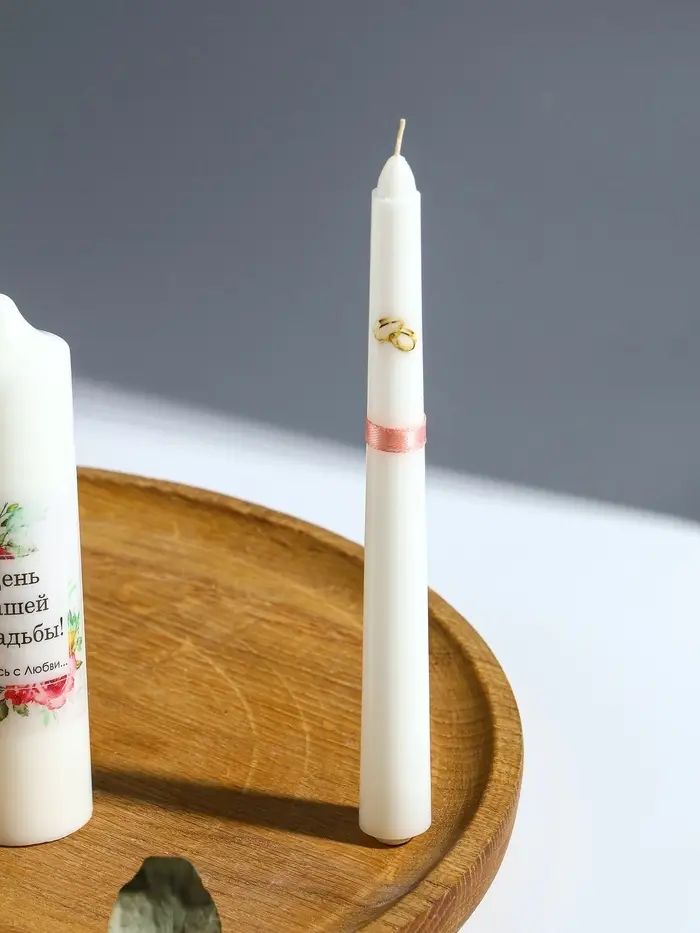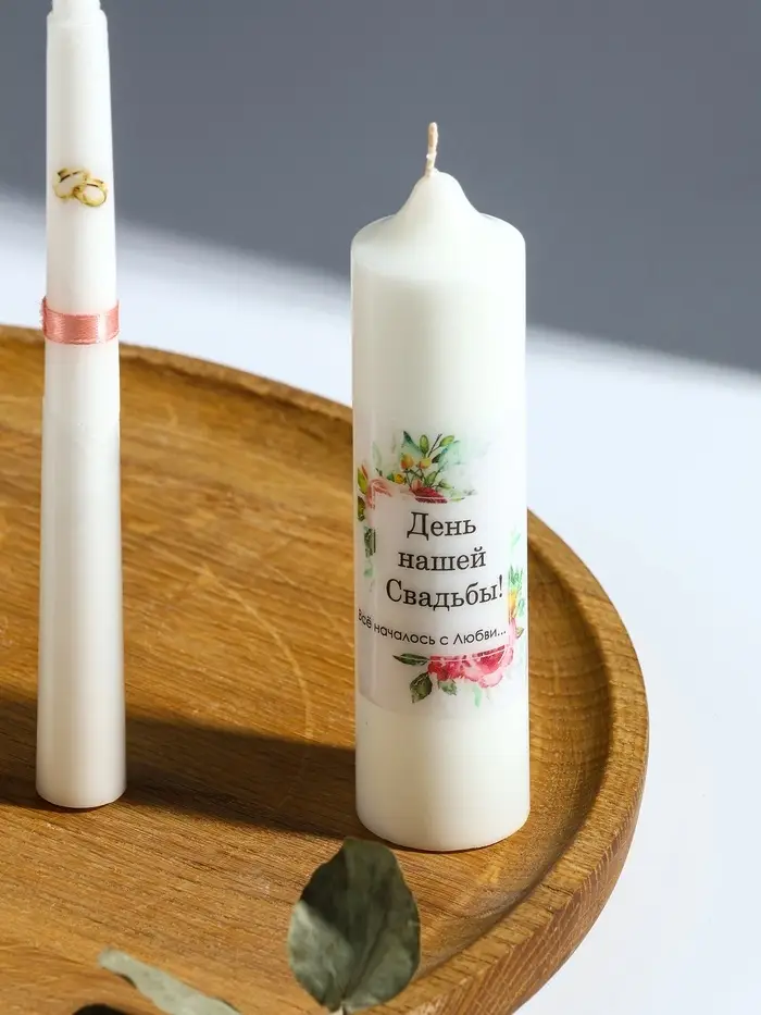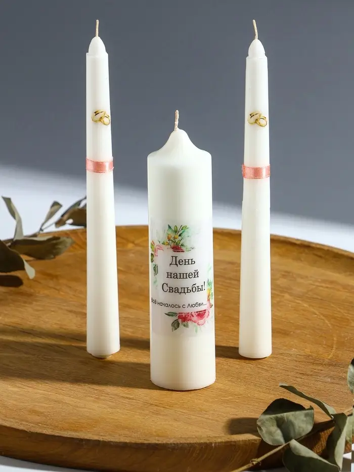 Свечи свадебные "День Нашей Свадьбы" набор 3 шт (15 см + 2 шт по 19 см), пудровый