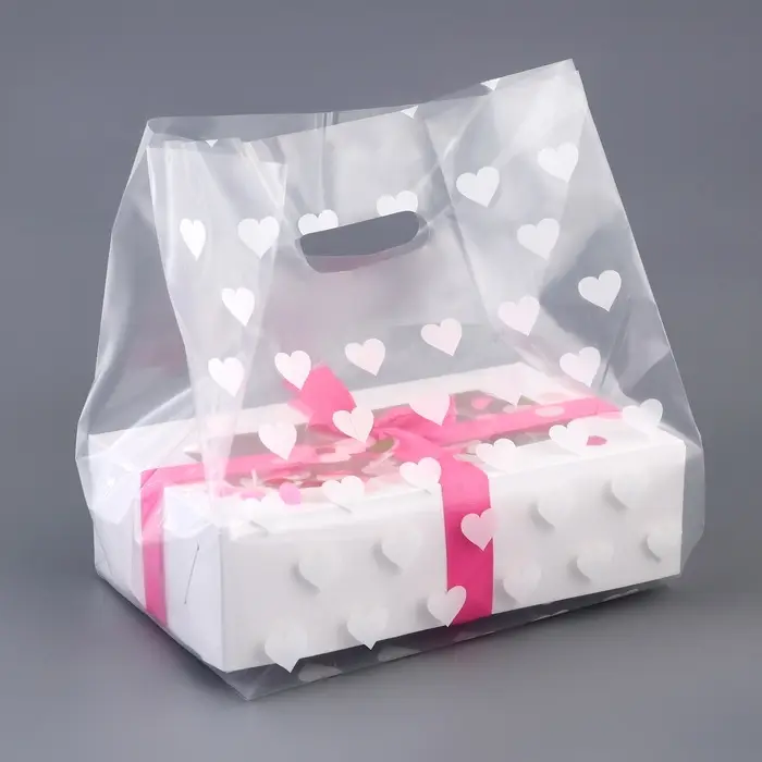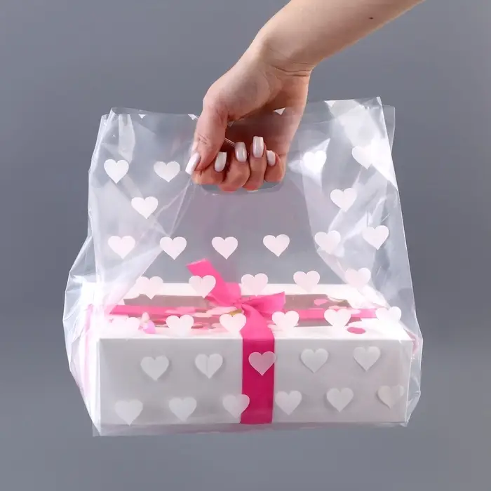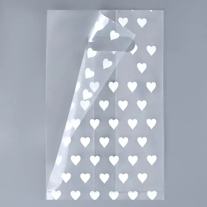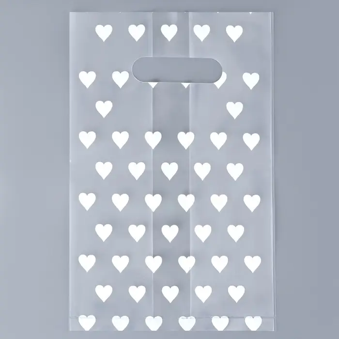 Пакет полиэтиленовый квадратный с вырубной ручкой, упаковка, "Сердечки", 25х35+16см ± 5% 60 мкм