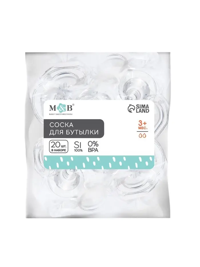 Соска на бутылочку M&B «Корона», антиколиковая, классическое горло, от 3 мес., средний поток, фасовка по 20 шт.