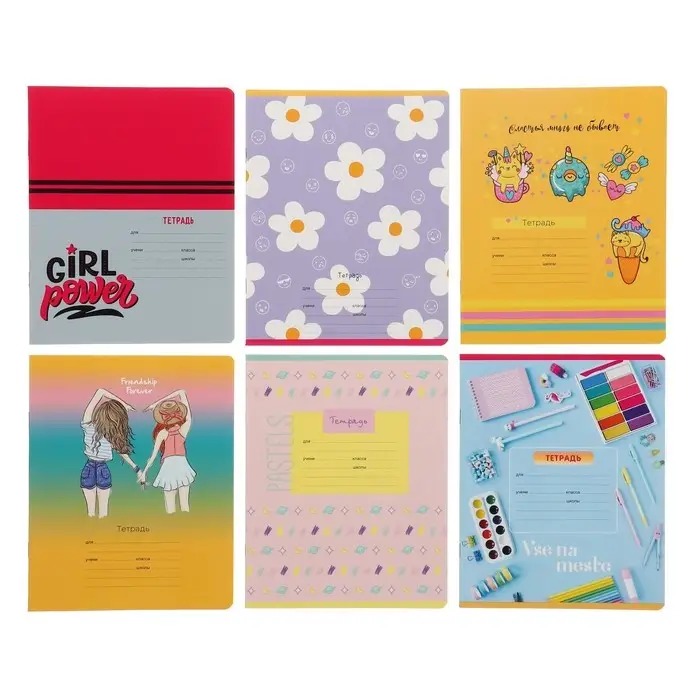 Тетрадь 18 листов в линию "Девочки", обложка мелованный картон, блок офсет, МИКС