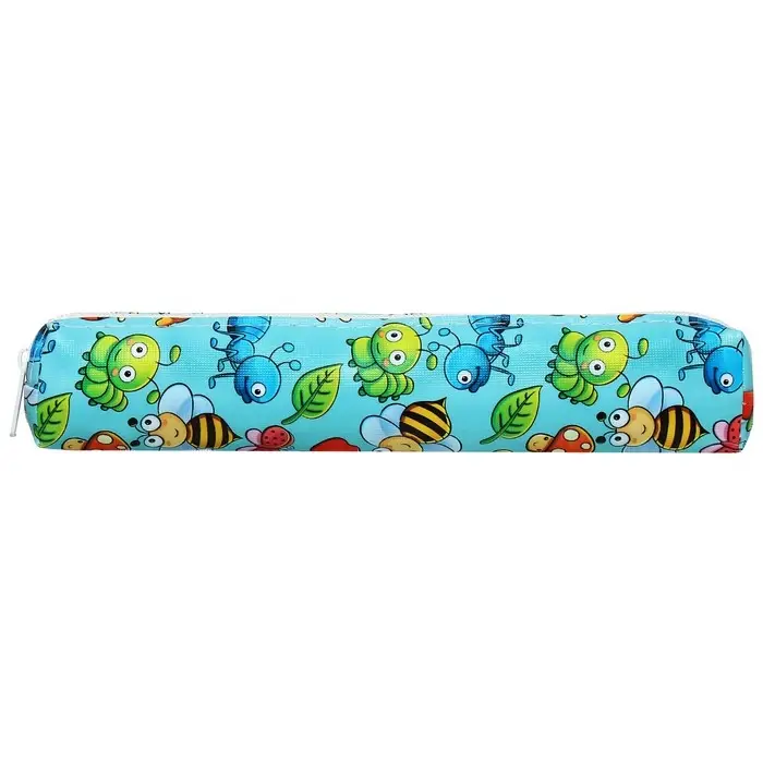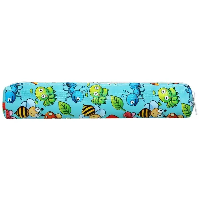 Пенал школьный на молнии "Насекомые", цвет голубой