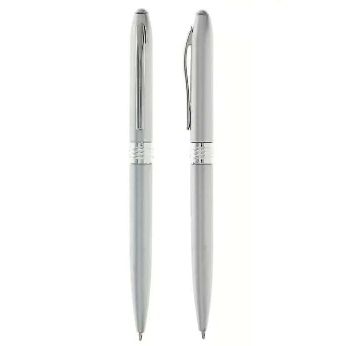 Ручка шариковая, поворотная, под логотип, корпус серебристый металлик