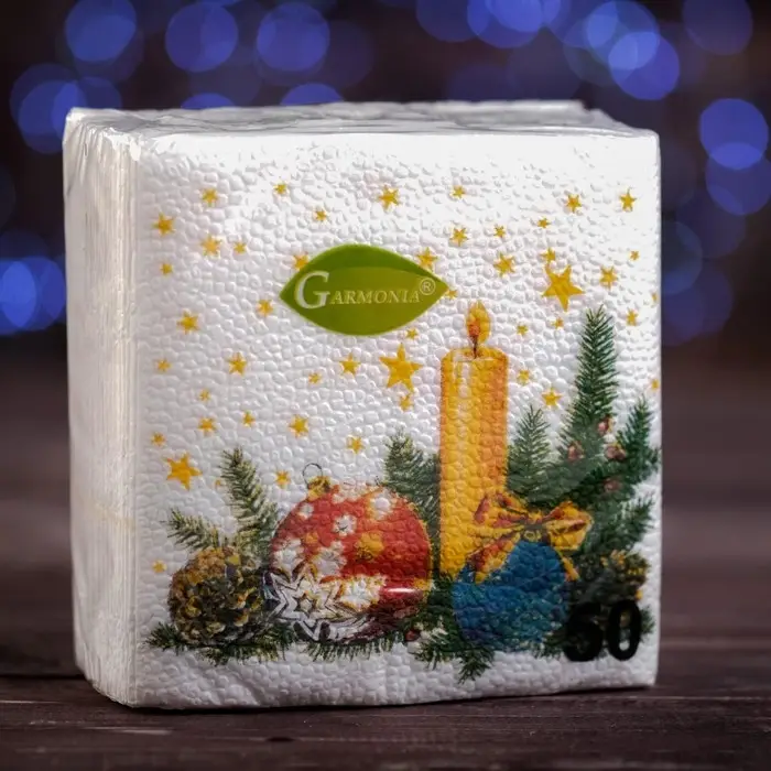 Салфетки новогодние бумажные Гармония цвета «Свеча», 24х24 см, 50 шт