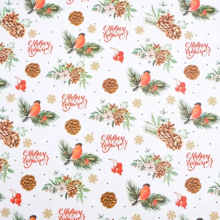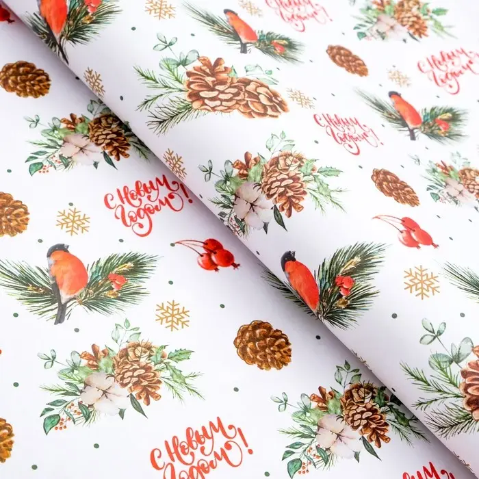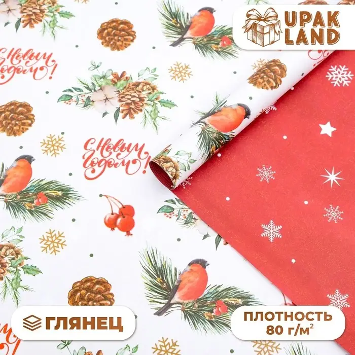 Бумага упаковочная глянцевая двусторонняя "Снегири", 70 х 100 см