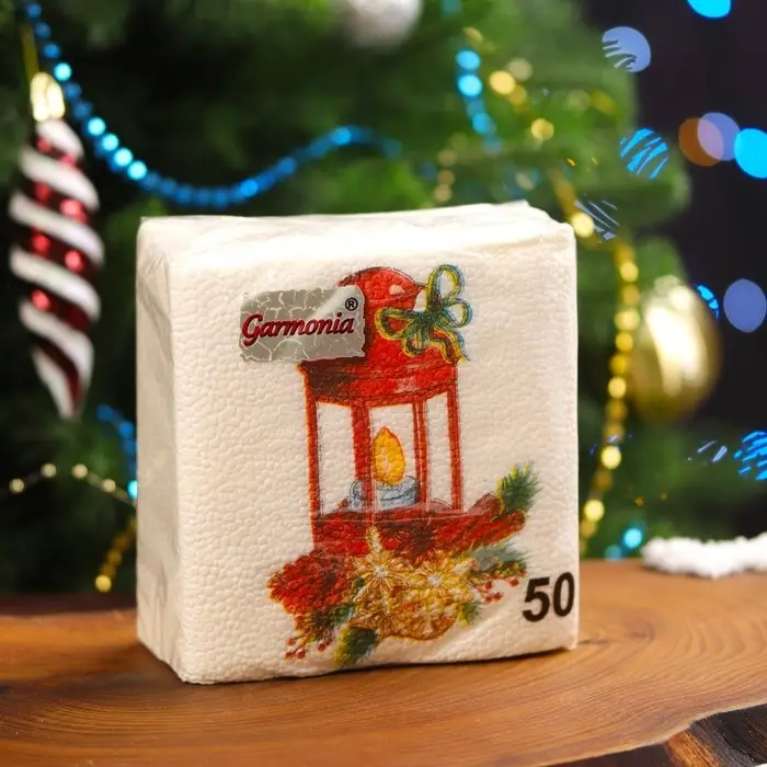 Салфетки новогодние бумажные Гармония цвета «Фонарик» 1 слой, 24х24 см, 50 шт