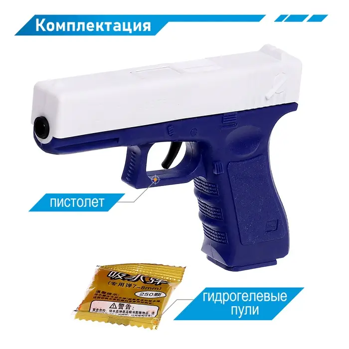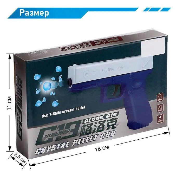 Пистолет «Глок», стреляет гидрогелевыми пулями, цвет МИКС