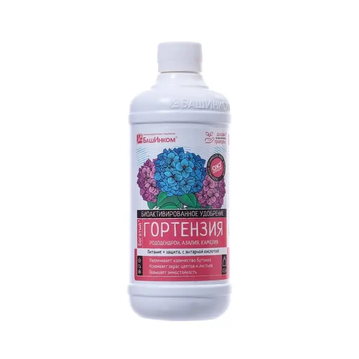 Препарат «Богатый Гортензия» для гортензий, рододендронов, азалий. Это современное инновационное биоудобрение увеличивает количество бутонов, усиливает окрас цветов и листьев, повышает зимостойкость.Это полноценное питание и защита, с янтарной кислотой.Удобрение обладает большим спектром действия:-оптимально понижает Ph почвы-укрепляет корневую систему-стимулирует рост-увеличивает количество бутонов-удлиняет период цветения-усиливает окрас листьев и цветов-повышает устойчивость к болезням и неблагоприятным факторам среды-увеличивает и восстанавливает плодородие почвы