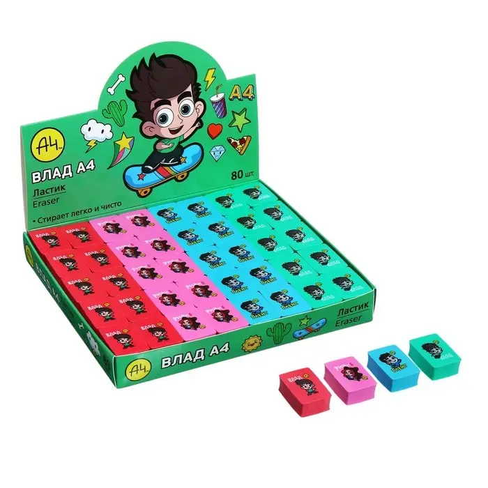 Ластик дизайн «Влад А4», 28 х 18 х 9 мм, МИКС