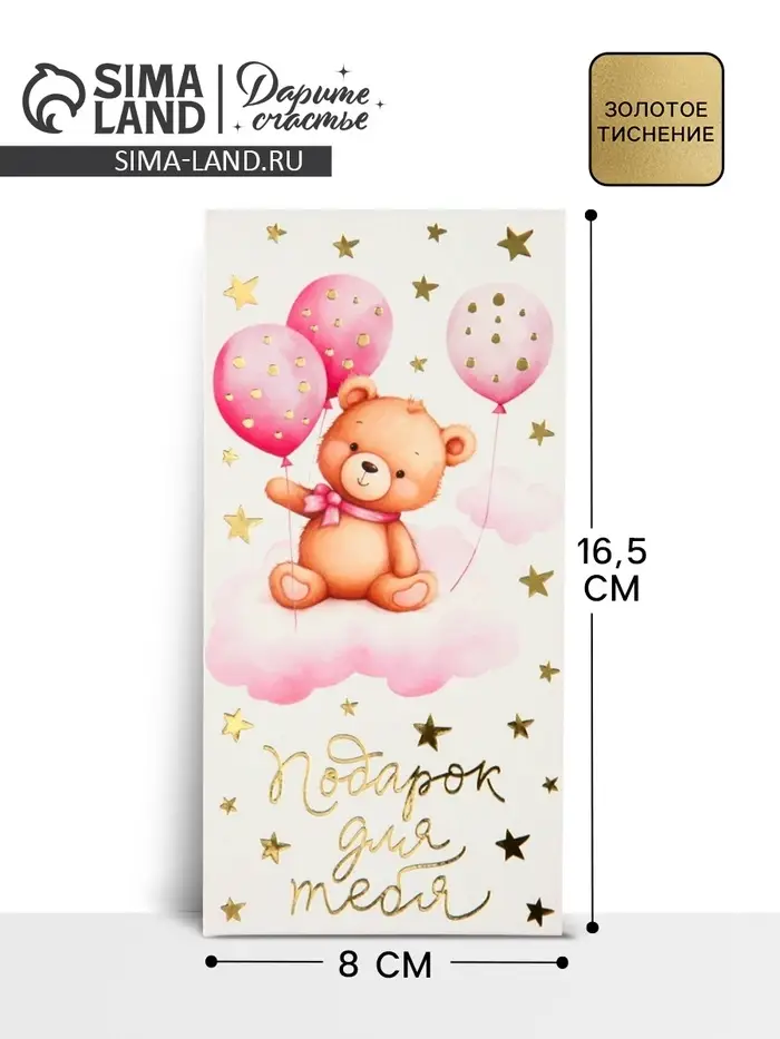 Конверт для денег «Подарок для тебя», тиснение, 16.5 х 8 см