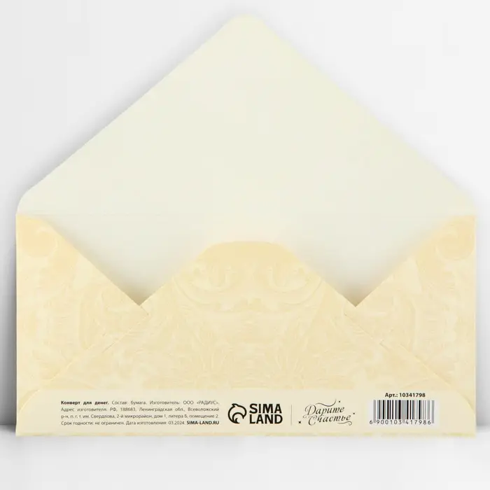 Конверт для денег «Семейного счастья», тиснение, 16.5 х 8 см