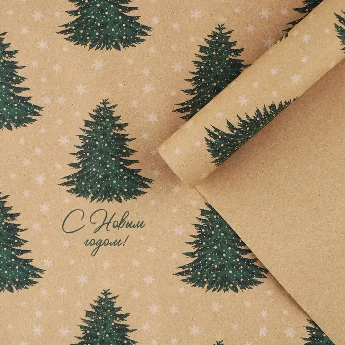 Упаковочная бумага на новый год крафтовая «Новогодняя ёлка» , 70 х 100 см