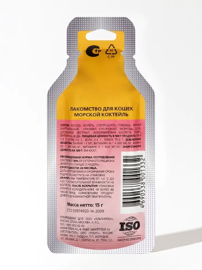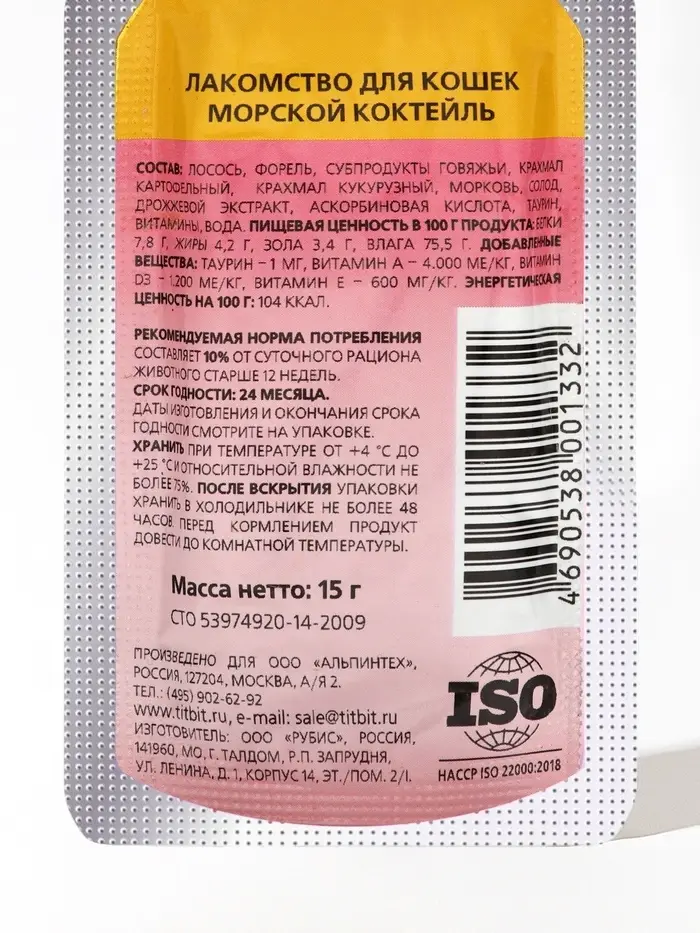 Морской коктейль лакомство для кошек TitBit 15 г