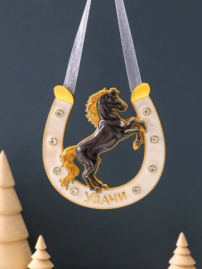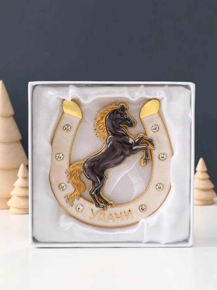 Сувенир-подкова «Удачи»,10,5х10,5х0,05см, эмаль, стразы