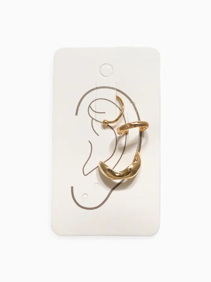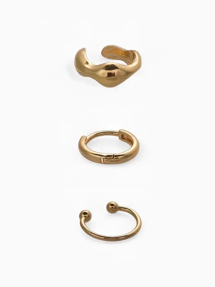 Набор серьга и каффы 3 шт. "Кольцо" тренд, цвет золото