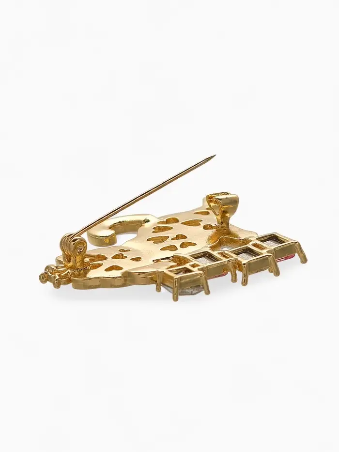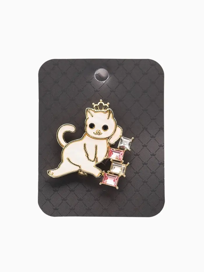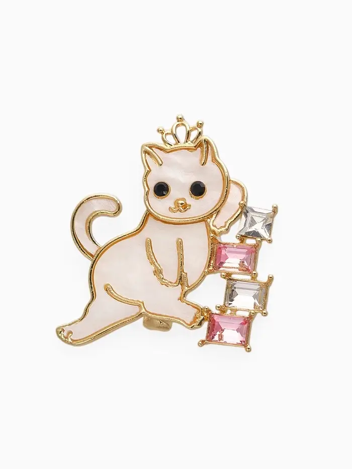 Брошь "Кошечка" в короне, бело-розовая в золоте