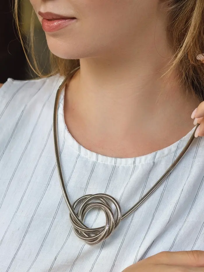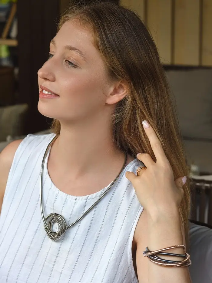 Браслет металл «Обруч» трансформируется в кулон, цвет серебро