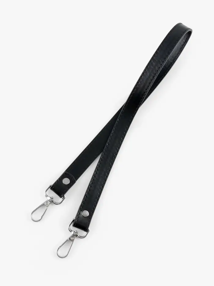 Ручка для сумки кожзам 2 карабина 60±1см*1,8см чёрный/серебряный АУ