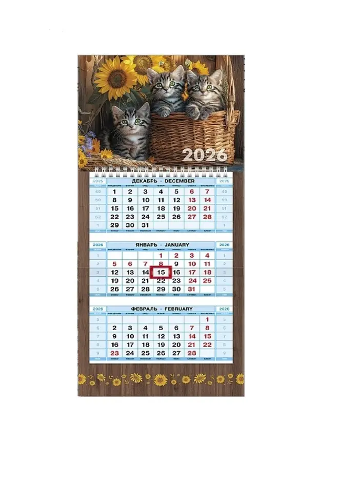 Календарь 2026 трио мини на пружине «Котята»