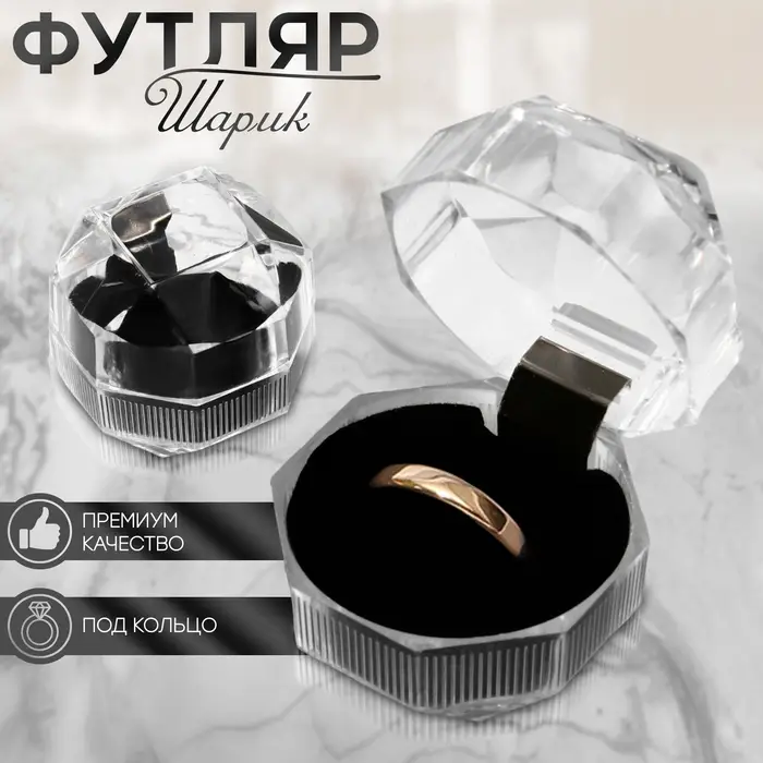 Футляр пластиковый под кольцо «Шарик», 4×4×4,5, вставка чёрная
