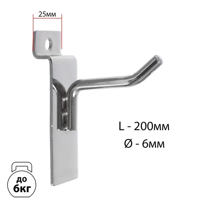 Крючок для экономпанелей, d=6 мм, L=20 см, цвет хром