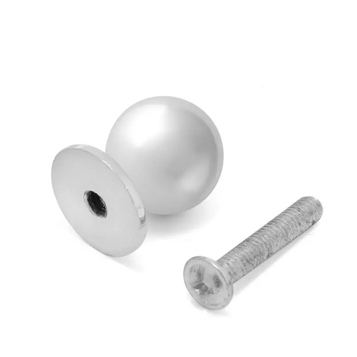 Металлическая круглая ручка-кнопка подойдёт для фасадов мебели кухни, гостиной или спальни.