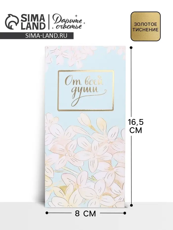 Конверт для денег «От всей души» тиснение, 16.5×8 см